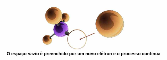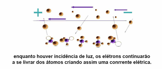 No período enquanto a célula é irradiada, os elétrons fluíram em direção constante, deixando átomos e indo lacunas em outras cadeias diferentes, este fluxo gera uma corrente elétrica chamamos esse ciclo de energia solar fotovoltaica.