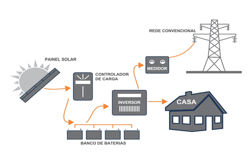 São aqueles que ao trabalhar em conjunto transformam energia solar em energia elétrica e, por meio de um inversor de frequência que ao painel fotovoltaico gerar energia elétrica em corrente contínua, o inversor converte para corrente alternada, sendo assim é injetada na rede elétrica. Esse inversor é o que realiza a interface entre o painel e a rede elétrica.