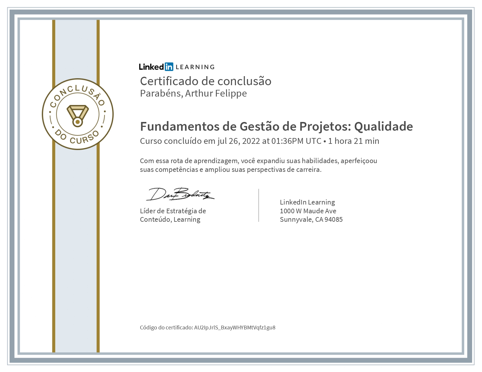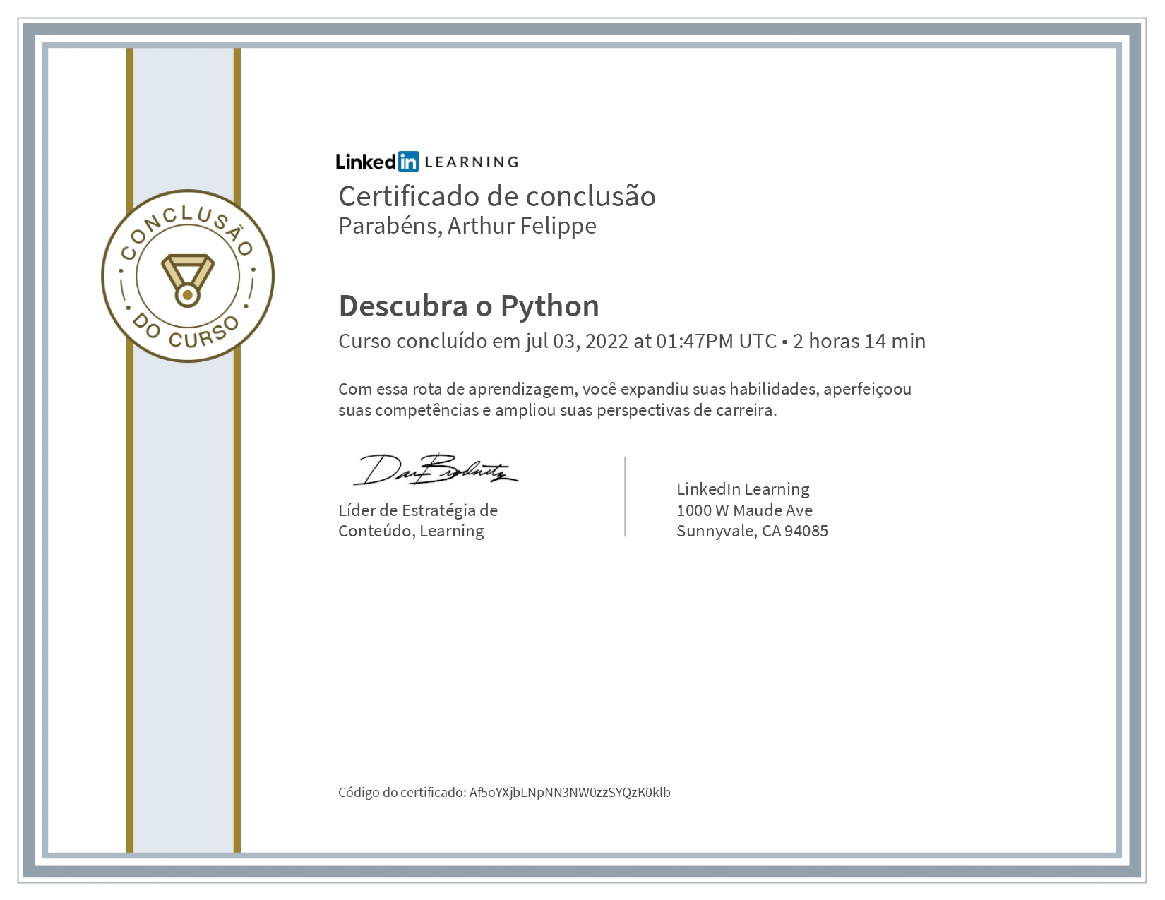 Abaixo segue todos os certificados