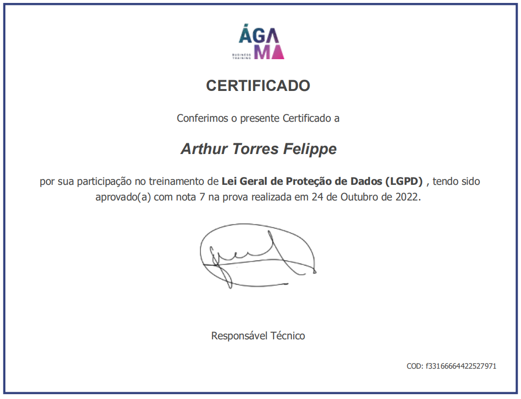 Lei Geral de Proteção de Dados (LGPD) - Codigo: f33166664422527971