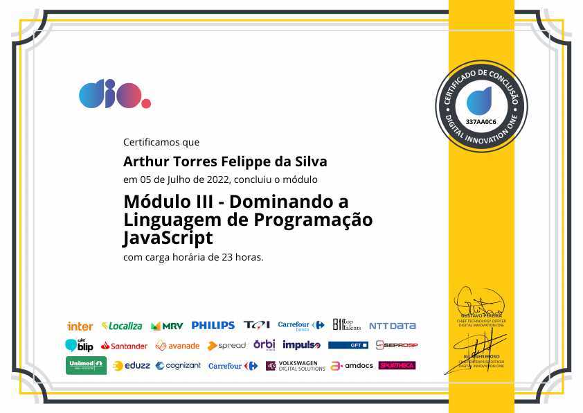Módulo III - Dominando a Linguagem de Programação JavaScript - Codigo:337AA0C6