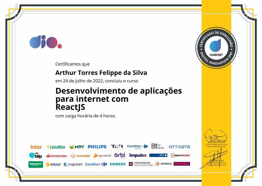 Desenvolvimento de aplicações para internet com ReactJS - Codigo: 1A0805B7