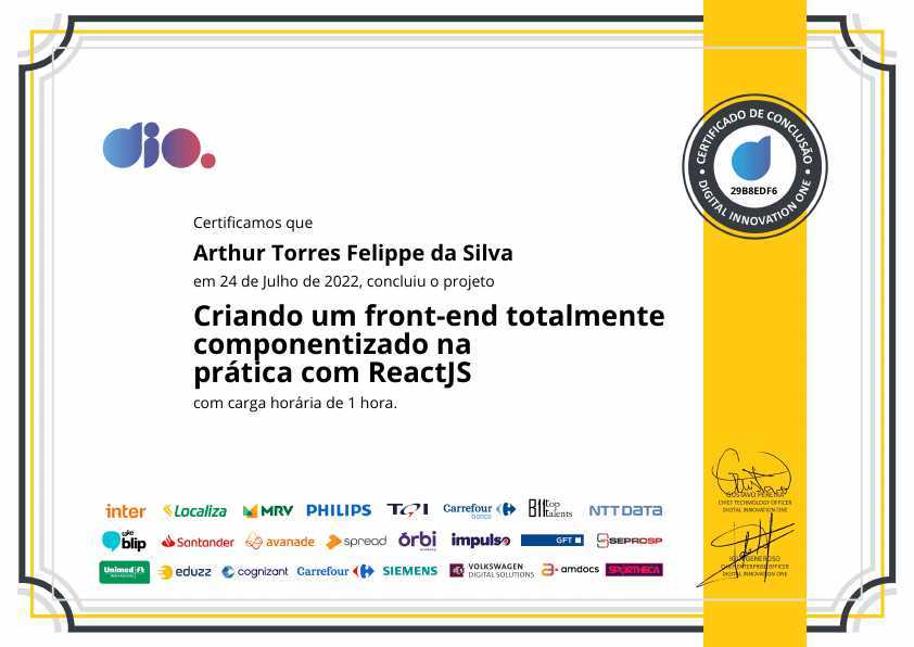 Criando um front-end totalmente componentizado na prática com ReactJS - Codigo: 29B8EDF6