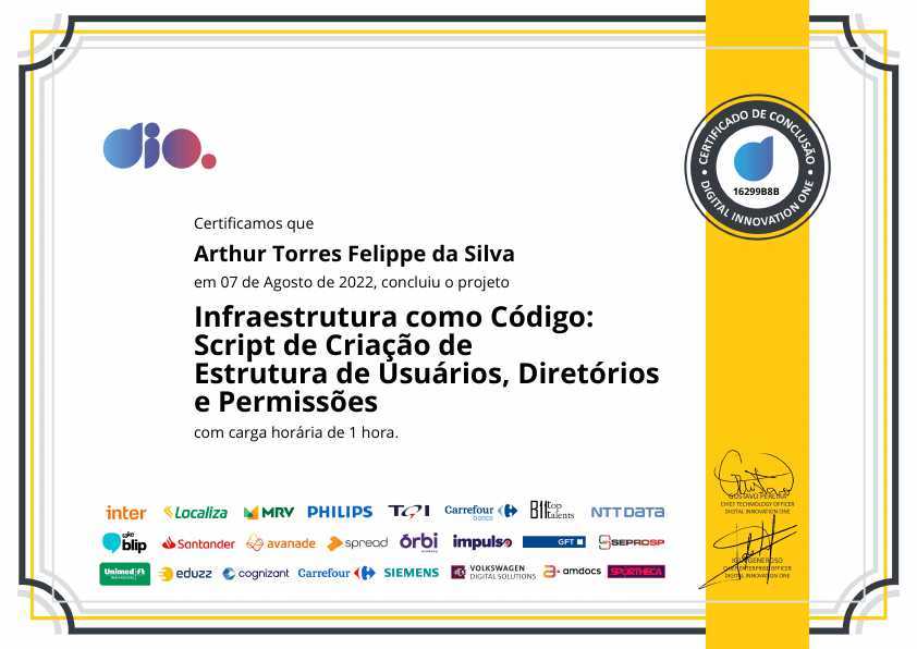 Infraestrutura como Código Script de Criação de Estrutura de Usuários, Diretórios e Permissões - Codigo: 16299B8B