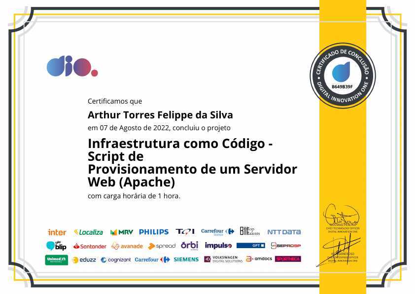 Infraestrutura como Código - Script de Provisionamento de um Servidor Web (Apache) - Codigo: B649B39F